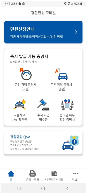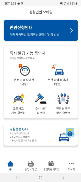 Q. 경찰 민원 앱에서 어떤 증명서를 발급할 수 있나요?