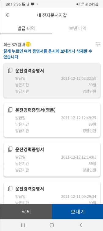 - 모바일에서 경찰 민원 증명서 발급 가능