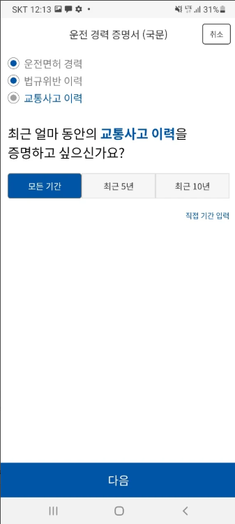 | 운전경력증명서(국/영문) | 수사사건 접수증 | 전의경 복무 확인서 |