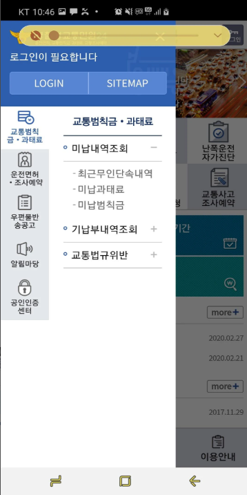 - 교통범칙금, 과태료 조회