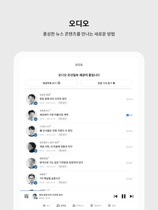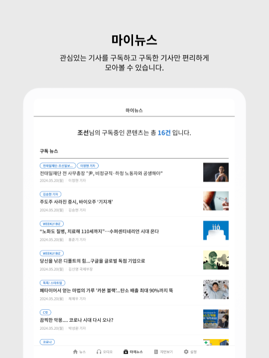 자신의 관심 기사만 모아 들을 수 있어 효율적인 뉴스 소비가 가능합니다.