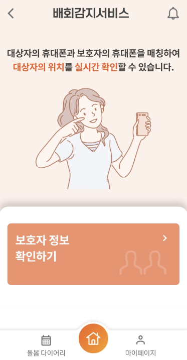 배회감지서비스는 치매환자의 위치를 실시간으로 확인하고 이탈 시 경고를 제공합니다. 긴급상황 발생 시 실종자 찾기 연계 기능도 지원돼 치매환자의 안전을 지킬 수 있습니다.