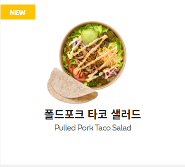 서브웨이는 고객들의 레시피 아이디어를 반영해 타코 샐러드를 정식 메뉴로 선보였습니다. 대표적으로 풀드포크와 스파이시 쉬림프 버전이 있으며, 신선한 채소와 소스가 어우러져 다양한 맛을 즐길 수 있습니다. 또띠아를 추가하면 더욱 풍성한 타코 스타일로 즐길 수 있습니다. 레시피를 응용한 메뉴가 정식으로 자리 잡았다는 점이 인상적입니다.