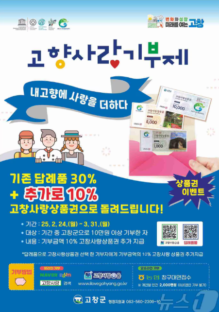 ⭐ 고창군은 다양한 농수축산물 답례품으로 높은 만족도를 보이는 대표 지역입니다.