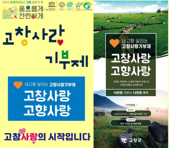 - 고창군: 다양한 농수축산물 답례품 구성