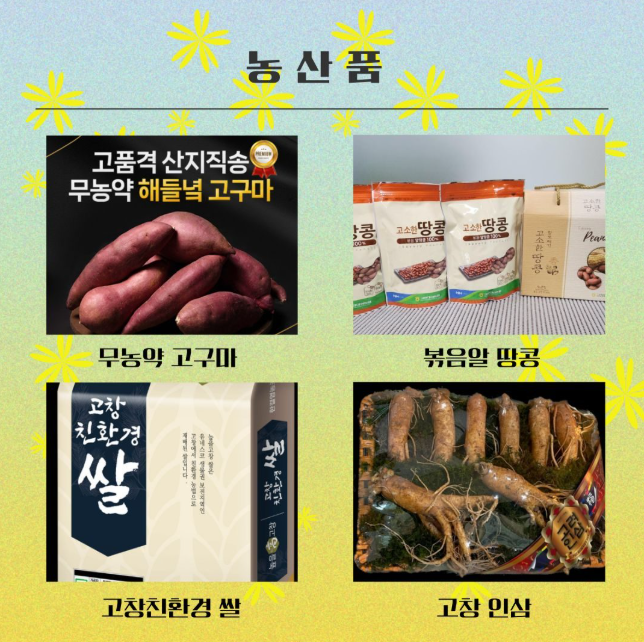 | 전북 고창군 | 풍성한 농수축산물 구성 | 장어, 고구마, 한우 등 |