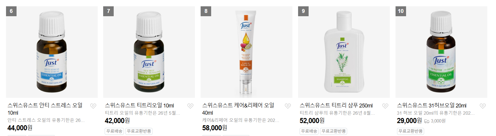 유스트 제품군은 부위별 목적과 혼합 조합에 따라 효과가 극대화되며, 근육, 피부, 두피 모두를 케어할 수 있는 맞춤형 루틴을 제공합니다.