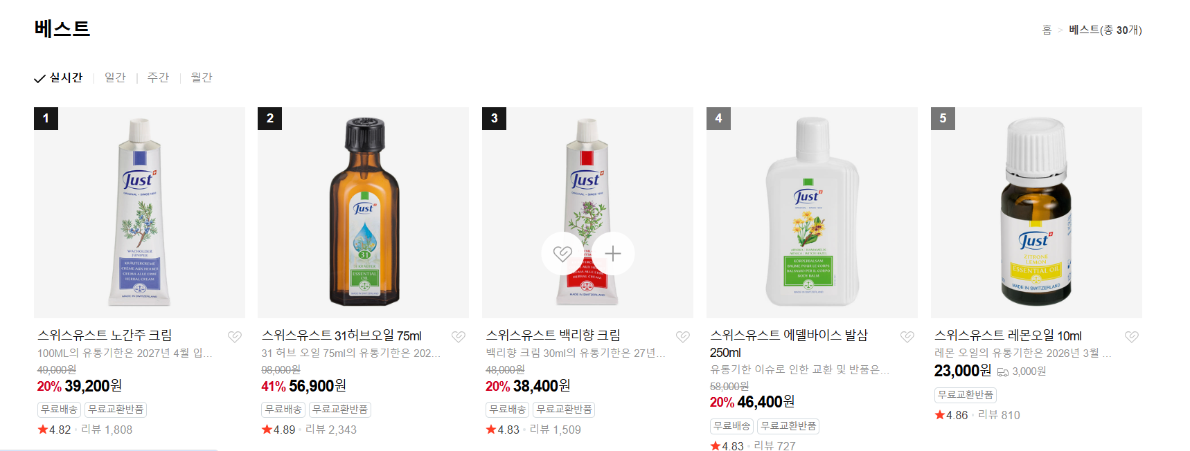 | 노간주 크림 | 노간주 열매, 유칼립투스 | 어깨·허리·무릎 마사지 |