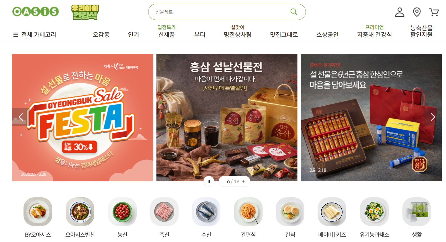 오아시스마켓은 직거래 구조와 전문적인 상품 선별 과정을 통해 일상 속 식품 선택의 기준을 높이며, 신선함과 편의성을 동시에 만족시키는 유통 서비스를 구축해 왔다.