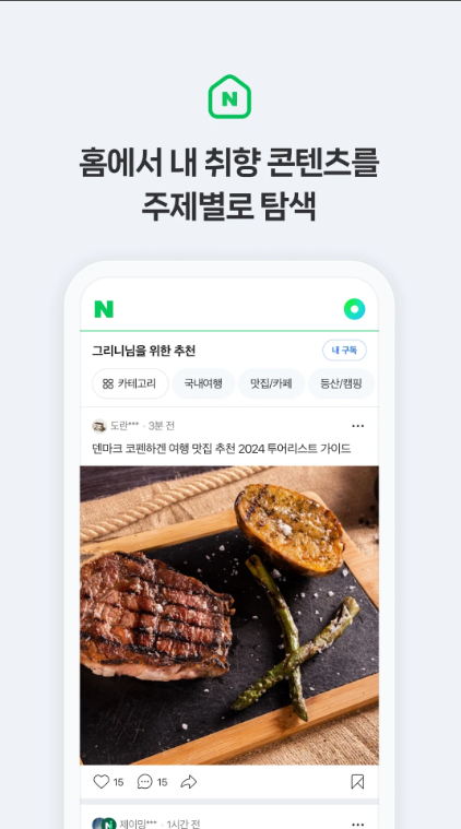 홈피드는 내 취향에 맞는 주제를 중심으로 콘텐츠를 추천합니다.