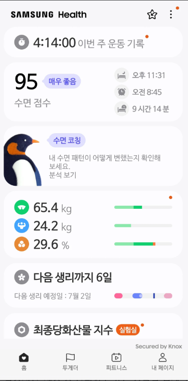 2016년 이후 출시된 기기부터는 Knox 보안이 적용되어 개인 건강 데이터를 안전하게 보호합니다.