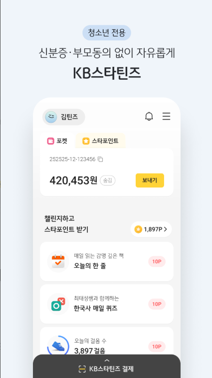 KB스타뱅킹은 단순한 뱅킹 앱을 넘어 실생활 속 인증과 금융의 모든 과정을 스마트하게 연결해줍니다. 특히 청소년부터 시니어까지 누구나 간편하게 접근 가능한 서비스는 KB스타뱅킹의 가장 큰 장점입니다.