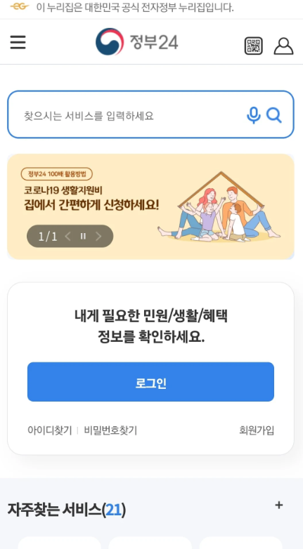 | 보조금24 | 맞춤형 지원금 정보 제공 | 메인 화면 > 보조금24 메뉴 접속 |