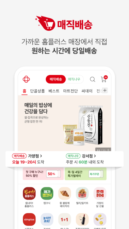 매장에서 직접 배송되는 시스템을 통해 홈플러스는 타 쇼핑앱과 차별화된 서비스를 제공합니다. 원하는 시간에 무료로 배송받을 수 있는 점이 가장 큰 장점입니다. 매직배송과 매직나우 서비스는 빠른 속도와 신선도를 동시에 보장하여 바쁜 일상 속에서도 안심하고 이용할 수 있습니다.