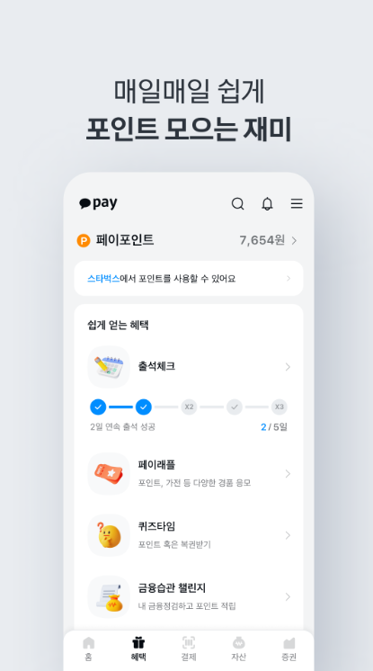 - 출석체크, 만보기 등 혜택 기능 적극 활용