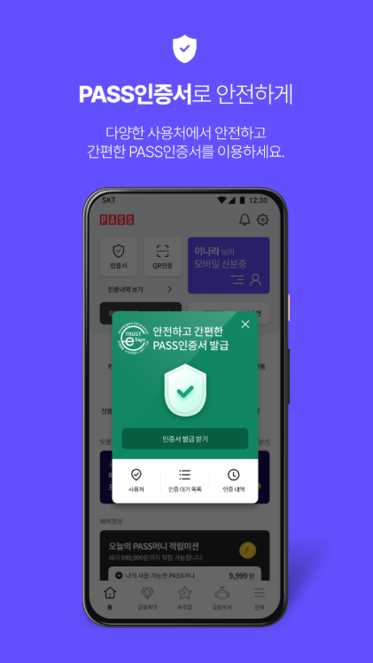 - PASS 지갑을 통해 정부 전자문서 및 자격증 보관 가능