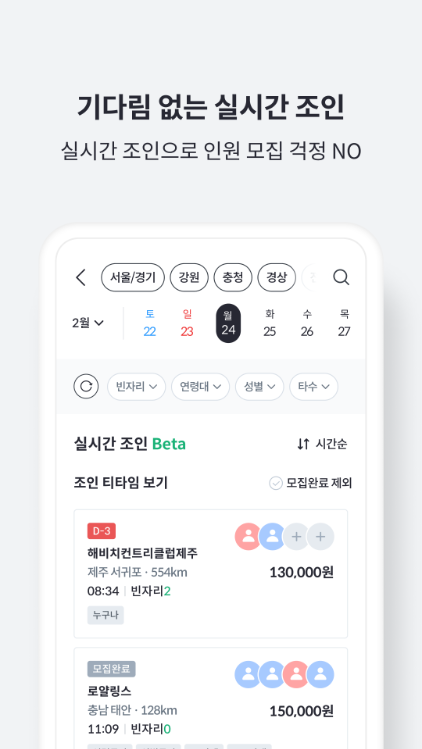 - 원하는 날짜와 지역 설정 가능
