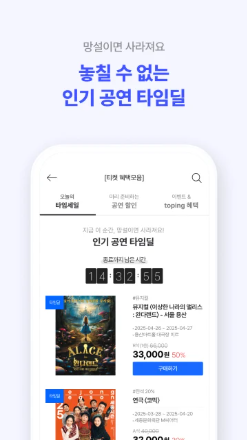 NOL 티켓은 다양한 프로모션과 카드 할인, 토핑 멤버십 혜택을 제공합니다. 단독 특가와 얼리버드 할인, 파이널콜 등으로 합리적인 예매가 가능합니다. 다른 플랫폼에서는 볼 수 없는 특별 이벤트가 자주 진행됩니다. 할인 카테고리별로 쉽게 찾을 수 있어 예매 효율도 뛰어납니다.