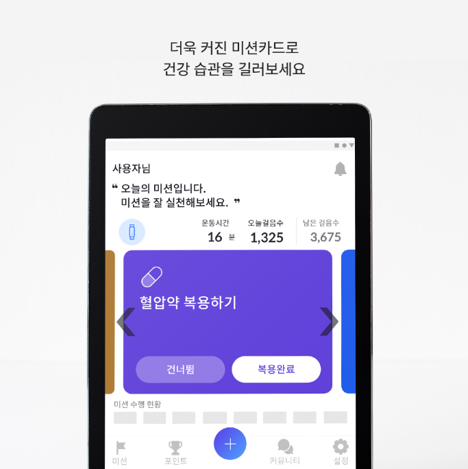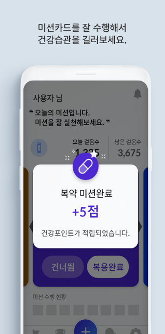 - 건강정보 기반 개인 미션 제공