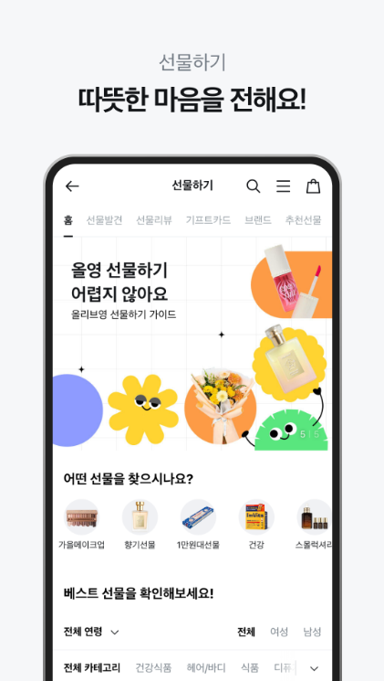 올리브영 앱은 단순한 쇼핑 앱이 아닙니다. 오늘드림, 나만의 리뷰, 선물하기, 정기배송 등 다양한 기능이 탑재되어 있습니다. 매일 새로운 기획전과 이벤트를 통해 쇼핑의 즐거움을 배로 제공합니다. 또한 오프라인 매장과 연계된 재고 확인 기능도 탑재되어 있어, 가까운 매장에 제품이 있는지 미리 확인할 수 있습니다. 똑똑한 소비를 위한 기능이 가득한 올리브영 앱.